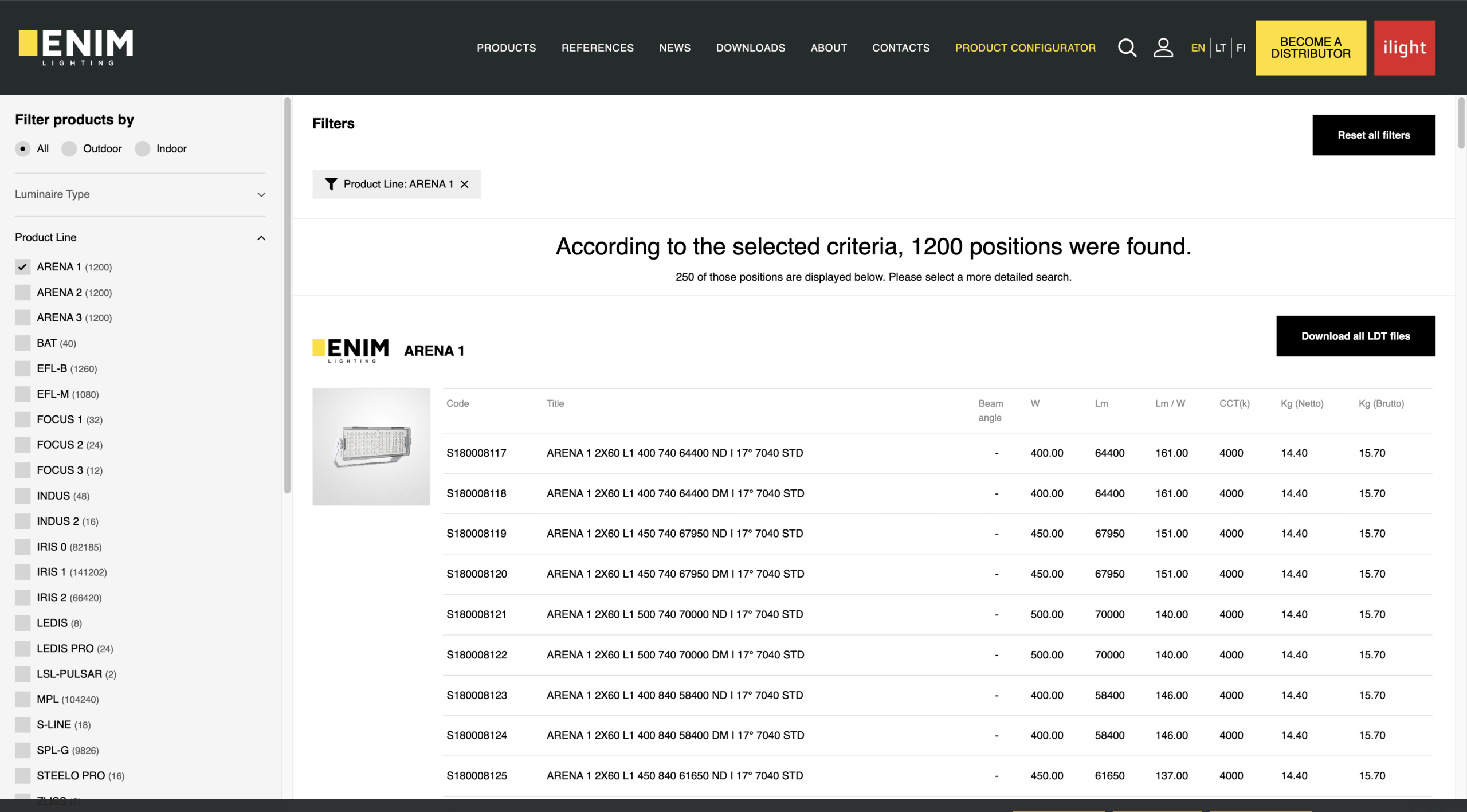Šis projektas – tai specialiai ENIM Lighting poreikiams sukurta individuali WordPress tema, orientuota į greitą apšvietimo produktų katalogo naršymą, techninių dokumentų pateikimą ir pažangų Product Finder filtravimą pagal techninius parametrus.